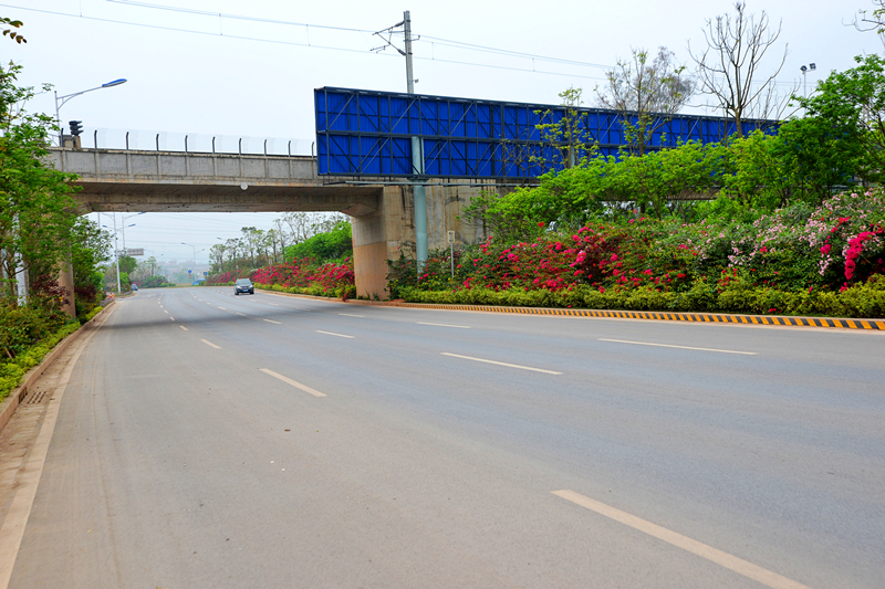 該道路設(shè)計標準為城市主干道,道路全長約4.8公里。設(shè)計道路寬度為60米,雙向8車道,橫斷面采用四塊板形式,路面采用瀝青混凝土路面,設(shè)計速度為60千米/小時。主要包括道路、橋涵、排水、照明、綠化、交通工程等建設(shè)項目。項目總投資6.5億元,其中建安費3.2億元。