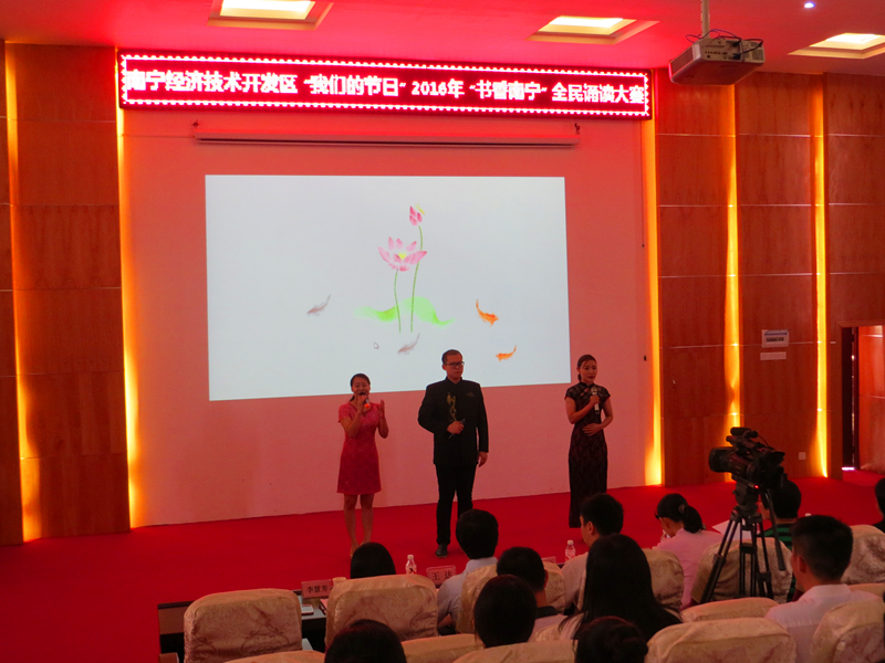 據(jù)了解,為大力培育和踐行社會主義核心價(jià)觀,傳承中華傳統(tǒng)節(jié)日和中華傳統(tǒng)國學(xué)文化,倡導(dǎo)全民閱讀,南寧市已連續(xù)多年舉辦“書香綠城”系列讀書活動和經(jīng)典誦讀活動。接到經(jīng)開區(qū)開展比賽的通知后,集團(tuán)領(lǐng)導(dǎo)高度重視,把該活動作為推動企業(yè)文化建設(shè)的一個有利契機(jī),積極組織人員參賽。集團(tuán)領(lǐng)導(dǎo)親自帶隊(duì),精心挑選了參賽作品,利用節(jié)假日的休息時間,加班加點(diǎn)進(jìn)行排演,逐字逐句地調(diào)整校正發(fā)音。為豐富表演形式,還讓集團(tuán)擅長制作PPT的職工結(jié)合誦讀的內(nèi)容制作了動態(tài)PPT,使表演更精彩。