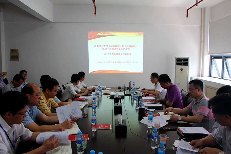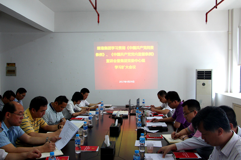 為進(jìn)一步加強(qiáng)廉政文化建設(shè),不斷提高黨員干部廉潔從業(yè)意識,推進(jìn)廉潔從業(yè)教育工作,以黨風(fēng)廉潔建設(shè)新成效促進(jìn)綠港集團(tuán)健康發(fā)展,4月20日上午,綠港集團(tuán)黨委召開學(xué)習(xí)貫徹《中國共產(chǎn)黨問責(zé)條例》和《中國共產(chǎn)黨黨內(nèi)監(jiān)督條例》(以下簡稱“兩部條例”)宣講報(bào)告會暨中心組學(xué)習(xí)擴(kuò)大會議,會議由綠港集團(tuán)黨組書記、董事長楊東主持,經(jīng)開區(qū)紀(jì)工委派駐國有公司紀(jì)檢組組長李云岳就“兩部條例”進(jìn)行了宣講,綠港集團(tuán)全體班子成員、集團(tuán)本部中層以上管理人員、子公司領(lǐng)導(dǎo)班子約50人參加會議。