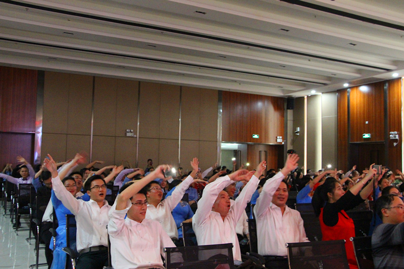 臺下觀眾熱情高漲,展現(xiàn)集團公司全體員工團結(jié)一心的良好風(fēng)貌