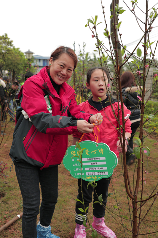 當天,綠港集團還舉行了植樹護綠活動。在細雨紛飛中,家長和孩子們一起動手,分工協(xié)作。大家栽得認真,干得賣力,揮鍬鏟土、挖坑、栽樹、蓋土、澆水,各個環(huán)節(jié)銜接有序,配合默契。整個植樹活動現(xiàn)場熱火朝天,歡聲笑語不絕于耳。經(jīng)過一個多小時的揮汗奮戰(zhàn),上百棵小樹苗整齊的“站”在了綠港·國際中心桃樹林中。放眼望去,樹苗迎風挺立、搖曳生姿,大家看著這一片自己親手種下的樹苗,無不露出幸福的笑容,紛紛與小樹苗合影。綠港集團下屬榮鑫公司副總經(jīng)理唐欽月表示:“植樹造林是一項利于當代、造福子孫的偉大工程。綠港集團成立五年來,每年都積極組織員工開展義務(wù)植樹造林活動。今天我們帶上孩子一起參加義務(wù)植樹活動,不僅增強了職工們生態(tài)環(huán)境保護的責任感,也給孩子們樹立了關(guān)心、愛護以及主動參與家園建設(shè)的意識和榜樣?!?nbsp;