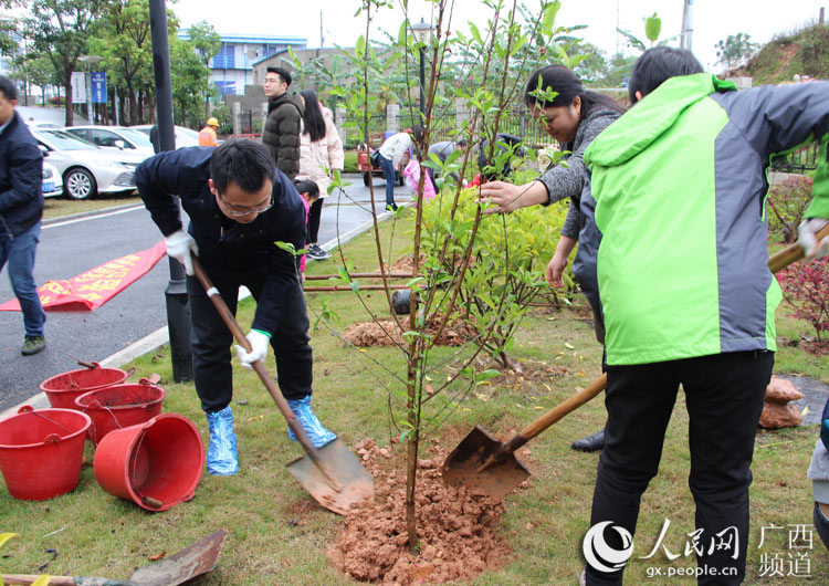 人民網(wǎng)南寧3月11日電 陽(yáng)春三月,萬(wàn)物復(fù)蘇,生機(jī)勃發(fā)。3月9日,細(xì)雨紛飛,春寒料峭,但是南寧經(jīng)開(kāi)區(qū)的綠港·國(guó)際中心卻人潮涌動(dòng),愛(ài)意濃濃。原來(lái),南寧綠港集團(tuán)正在舉行“情暖童心·攜手植綠”學(xué)雷鋒志愿服務(wù)月活動(dòng),200多名職工和家屬一起參加了當(dāng)天的愛(ài)心義賣、愛(ài)心捐贈(zèng)和義務(wù)植樹(shù)活動(dòng)。