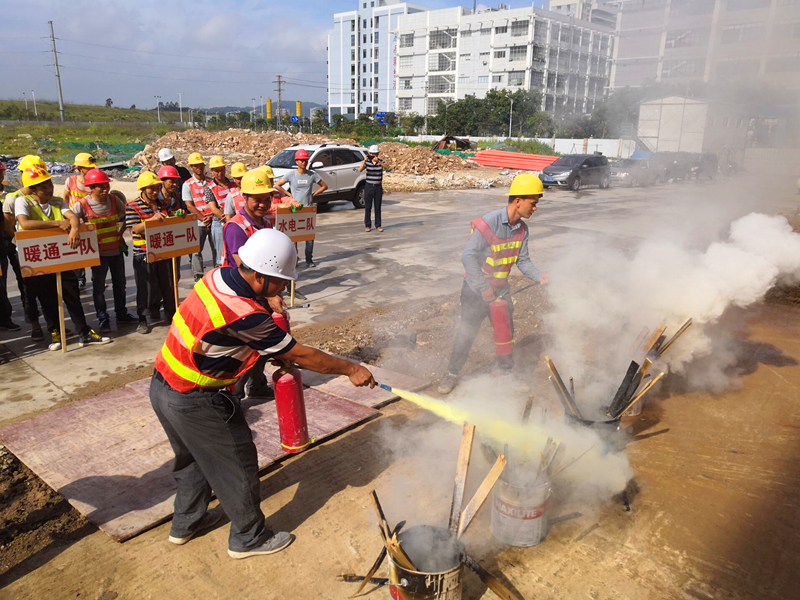 激烈的比賽結(jié)束后,消防應(yīng)急演練活動開始了。當(dāng)聽到“起火啦”的大喊聲,全體人員井然有序的進行了逃生演習(xí)。伴隨著濃濃的煙霧,每個人捂著“濕毛巾”,沿著樓梯靠右一個接一個的快速撤離。當(dāng)全體人員走出廠房大門時,工作人員在空地上點燃了幾盆火焰。公司質(zhì)安部負(fù)責(zé)人講解了干粉滅火器的使用方法后,大家進行了踴躍的嘗試。在此次消防演習(xí)中,本著防患于未然的心態(tài),所有人員積極參與,專心聽講,既鞏固了消防安全知識,也提高了項目安全生產(chǎn)工作水平。