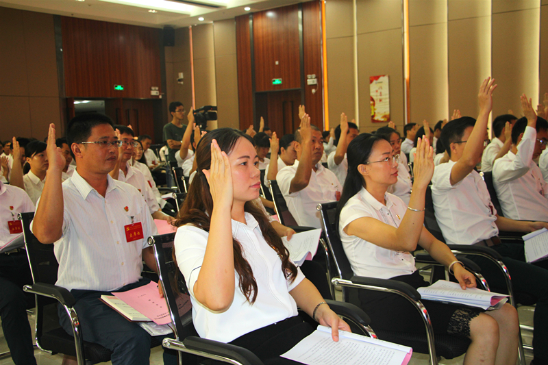 與會黨員聽取相關工作報告,并對報告事項進行表決