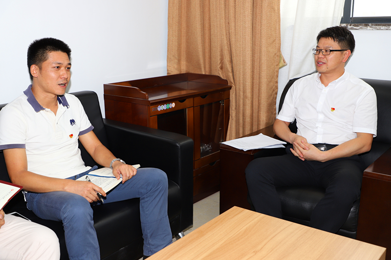 集團(tuán)黨委書記、董事長龔國強(qiáng)與入黨積極分子胡志勇談心談話