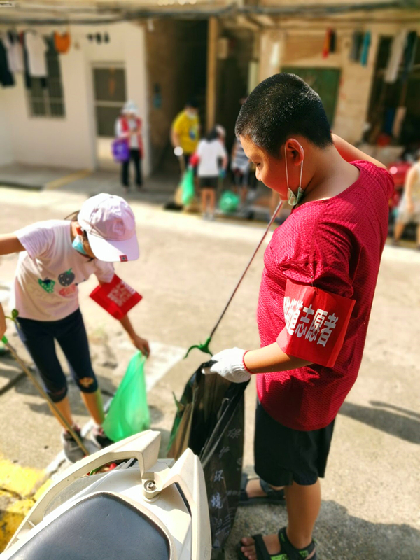 7月31日,綠港集團(tuán)冶煉廠小區(qū)迎來了一群特殊的創(chuàng)城志愿者,那是綠港集團(tuán)職工帶著自己的孩子,利用假期來到冶煉廠小區(qū)開展創(chuàng)城志愿服務(wù)活動。他們最小的只有8歲,其中李悅歌小妹妹今早7:30就跟隨著她媽媽一一中港興公司的蘭春梅來到了小區(qū)。下午志愿者蒙歆芬也帶著她的孩子以及他的6名同學(xué)、朋友們來到了小區(qū)共同開展志愿服務(wù)活動。