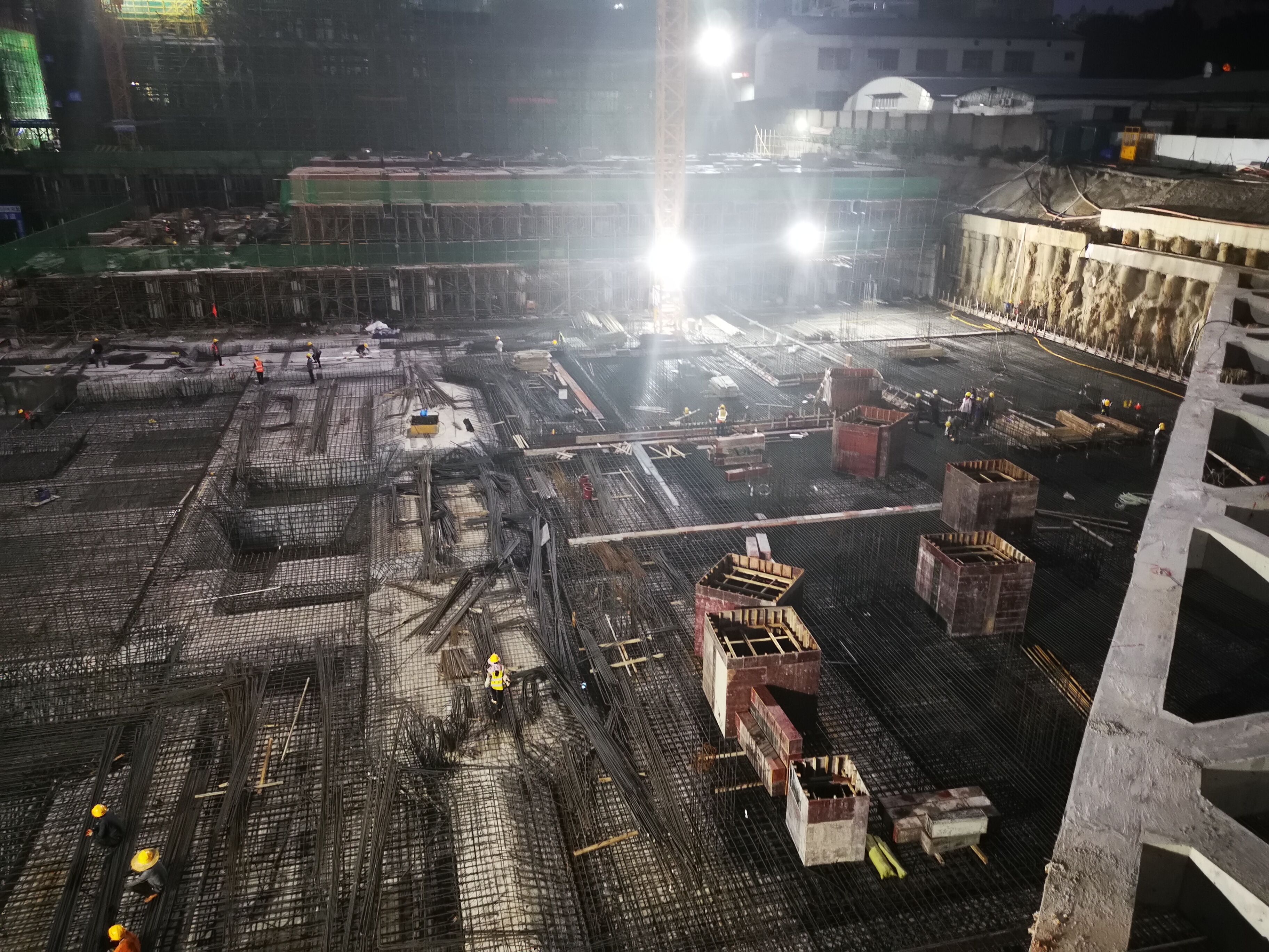 在完成支護(hù)樁施工及土方外運(yùn)工作后,接下來就是緊張的基礎(chǔ)及地下室施工,在剩下不到40天的時(shí)間里完成兩層地下室施工,這是一場與時(shí)間賽跑的大戰(zhàn)。推進(jìn)小組全體成員頂住壓力,緊盯5月31日預(yù)售節(jié)點(diǎn)目標(biāo),開足馬力全力推進(jìn)項(xiàng)目建設(shè)加速跑。推進(jìn)小組實(shí)行每天碰頭會(huì),每周安全生產(chǎn)推進(jìn)會(huì),按照工期節(jié)點(diǎn)倒排施工計(jì)劃,層層細(xì)化每日施工任務(wù),持續(xù)加強(qiáng)內(nèi)外溝通。依據(jù)工程進(jìn)展情況,督促施工單位同時(shí)展開多個(gè)作業(yè)面,增加施工人員及機(jī)械設(shè)備的投入,采取倒班等措施搶回時(shí)間,保證施工現(xiàn)場做到“見縫插針、動(dòng)態(tài)管控”。經(jīng)過項(xiàng)目推進(jìn)小組及參建各方2個(gè)多月的日夜奮戰(zhàn),項(xiàng)目8#、6#樓于4月12日、5月13日提前完成主體結(jié)構(gòu)封頂;3#樓5月27日提前完成±0.00層達(dá)到預(yù)售節(jié)點(diǎn);在臨時(shí)增加工程量的情況下, 1#樓于6月5日完成集團(tuán)公司設(shè)定的項(xiàng)目預(yù)售節(jié)點(diǎn)攻堅(jiān)目標(biāo)。