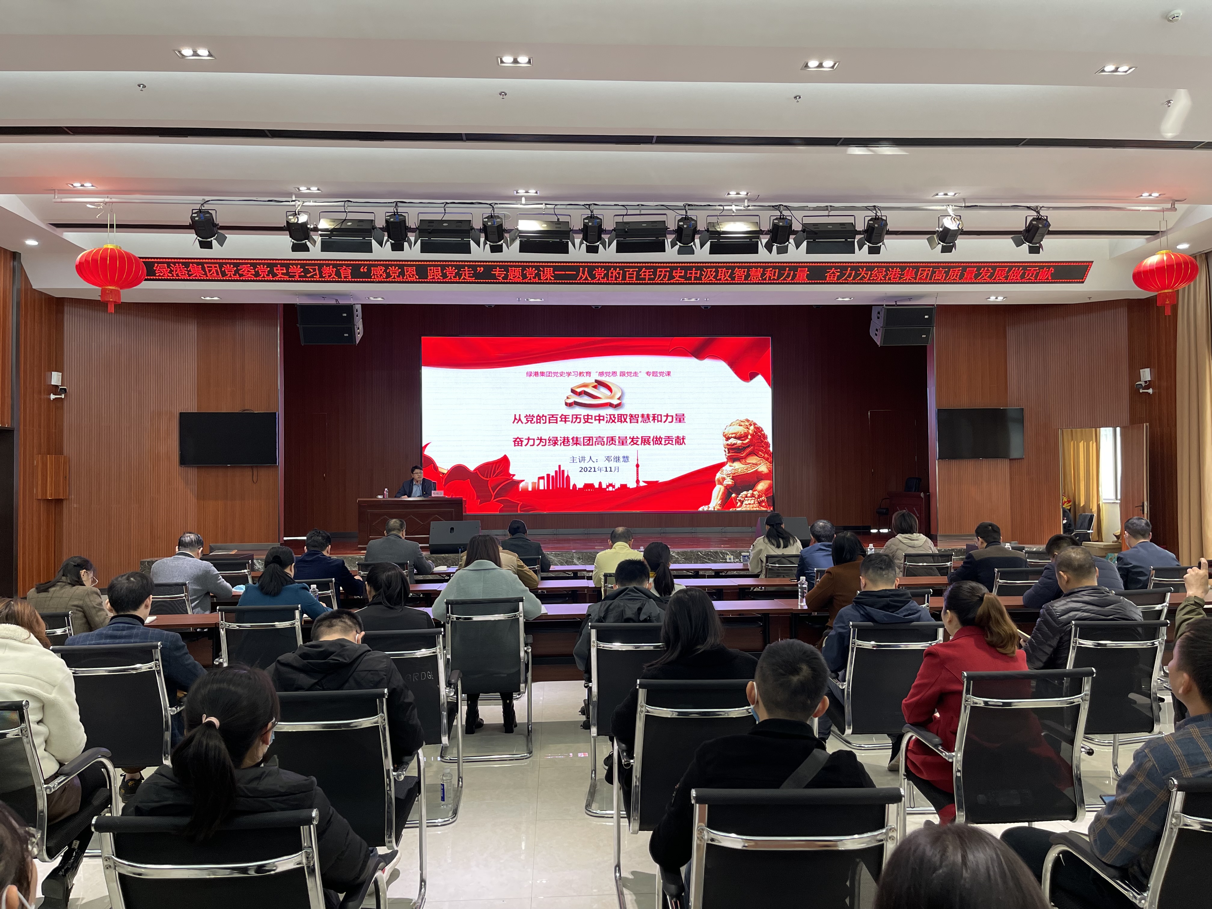 11月23日,綠港集團(tuán)黨委開(kāi)展黨史學(xué)習(xí)教育“感黨恩 跟黨走”專(zhuān)題黨課。集團(tuán)黨委副書(shū)記、總經(jīng)理鄧?yán)^慧以《從黨的百年歷史中吸取智慧和力量 奮力為綠港集團(tuán)高質(zhì)量發(fā)展做貢獻(xiàn)》為題,為集團(tuán)全體黨員、發(fā)展對(duì)象、入黨積極分子講授黨課。