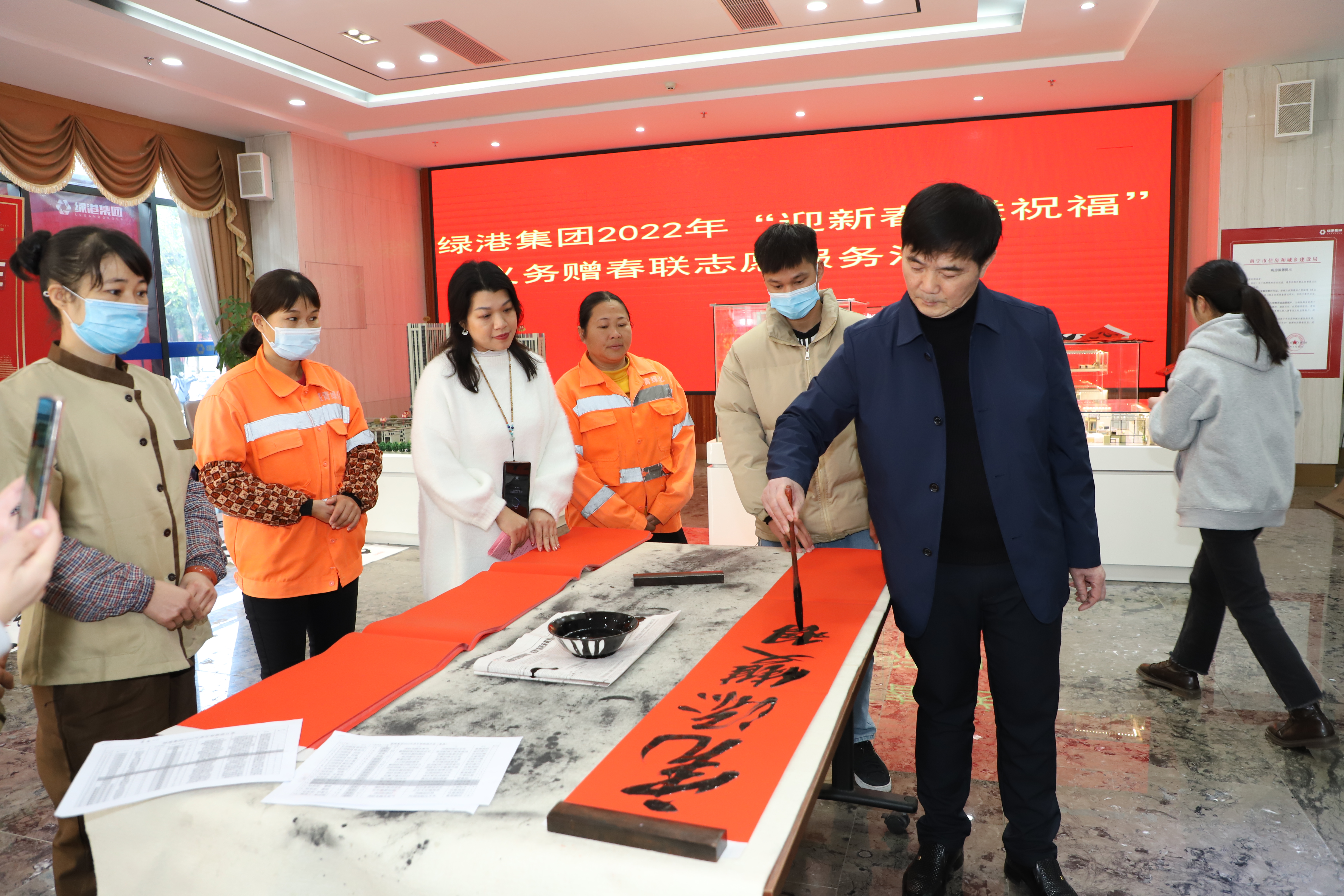 寫春聯(lián)送祝福,濃濃墨香迎新年。為弘揚(yáng)優(yōu)秀傳統(tǒng)文化,營造歡樂祥和、喜慶熱烈的濃厚節(jié)日氛圍,1月17日-19日,綠港集團(tuán)黨委、綠港集團(tuán)工會(huì)組織開展2022年“迎新春·送祝?!绷x務(wù)贈(zèng)春聯(lián)志愿服務(wù)活動(dòng)。