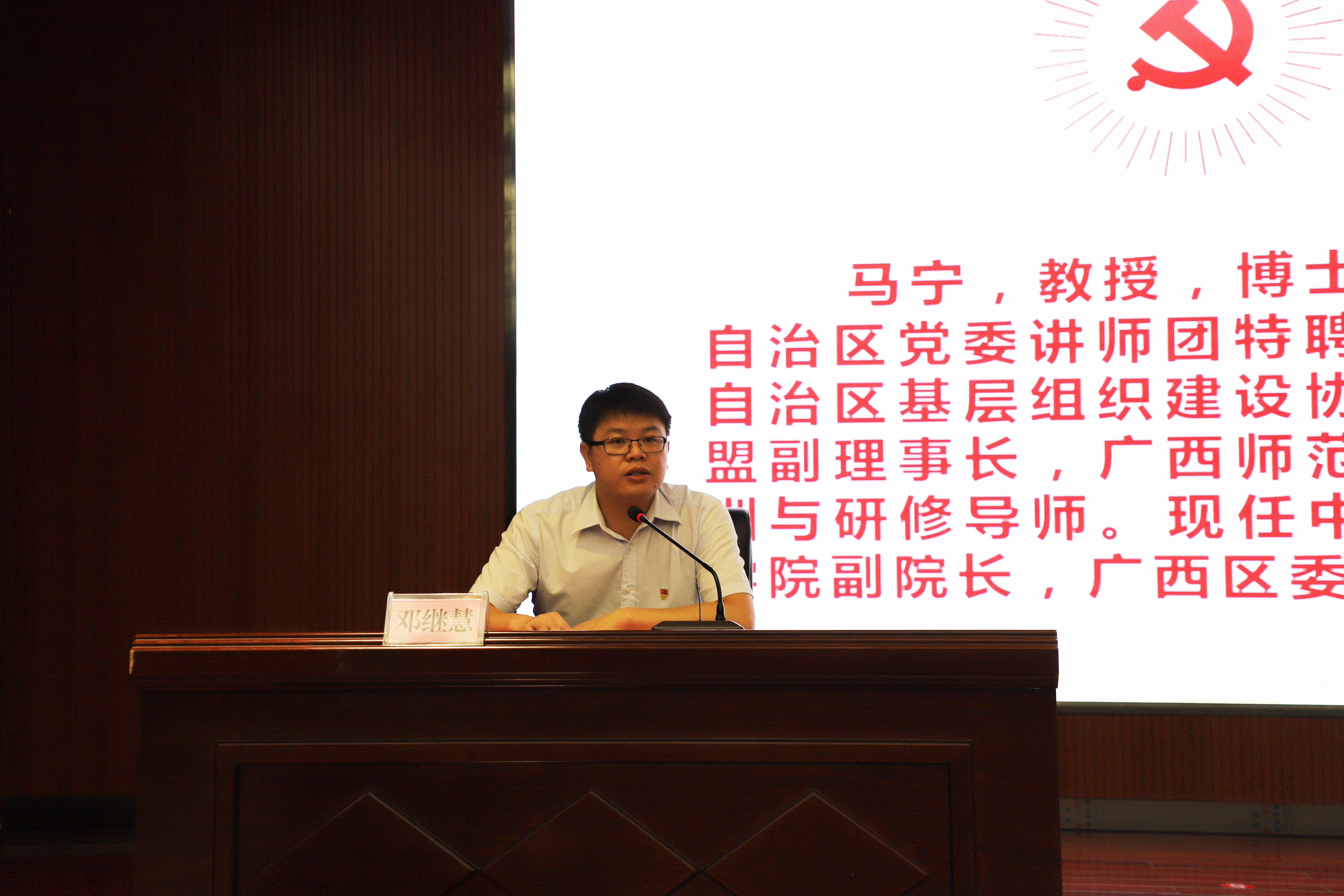 為進一步深入學習貫徹習近平新時代中國特色社會主義思想,增強廣大黨員干部理想信念,進一步解放思想,改革創(chuàng)新,擔當實干,推動集團公司各方面工作高質(zhì)量發(fā)展。9月28日,綠港集團黨委召開學習《習近平談治國理政》第四卷專題宣講報告會。廣西區(qū)委黨校副校長、廣西行政學院副院長、廣西區(qū)委黨校機關(guān)黨委書記馬寧教授到現(xiàn)場作專題宣講。集團公司全體黨員、預備黨員參加宣講會。會議由集團黨委副書記、總經(jīng)理鄧繼慧主持。