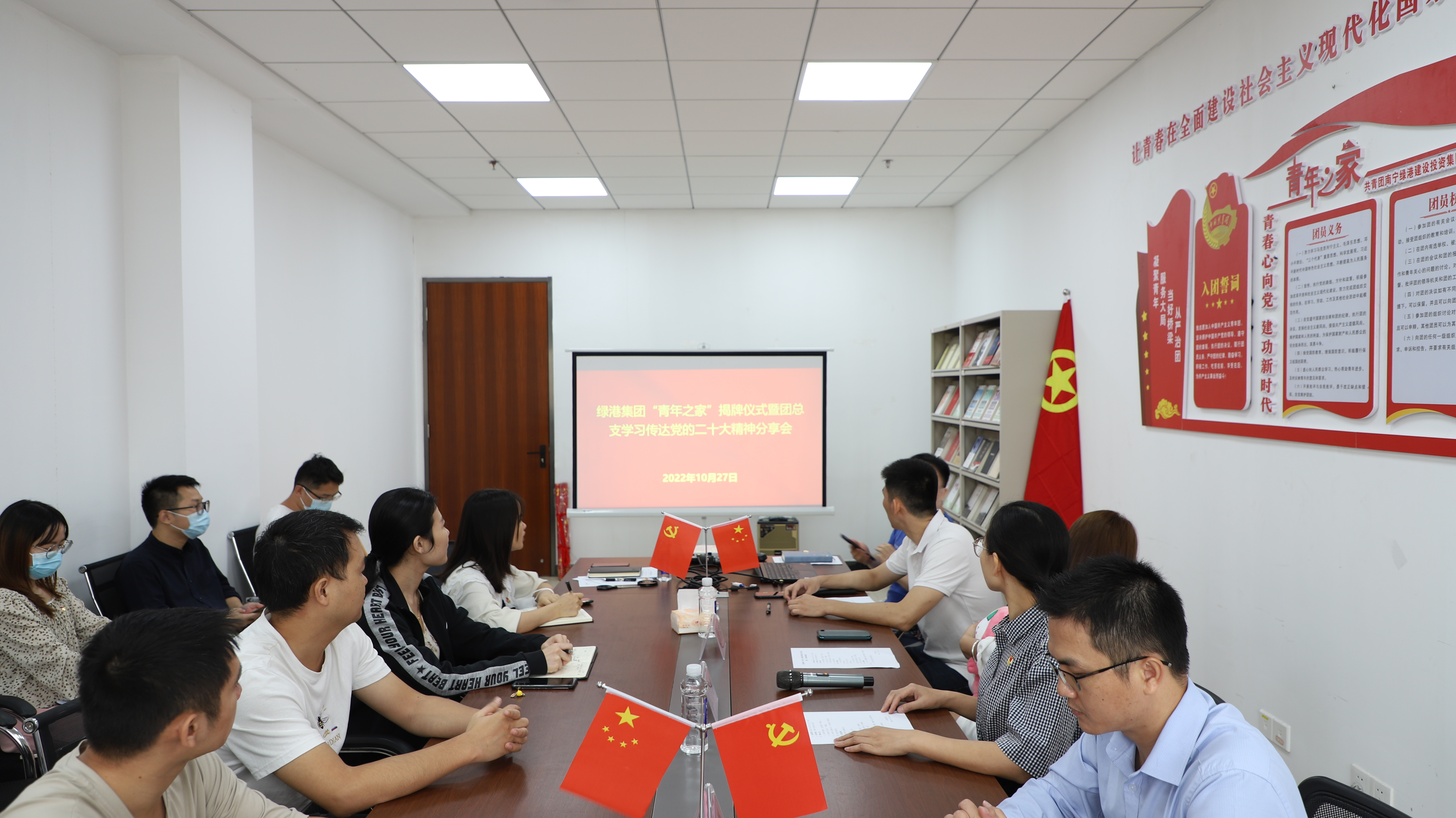 為加強團的陣地建設(shè),更緊密地聯(lián)系青年、高質(zhì)量地服務(wù)青年,調(diào)動團員青年參與團的活動的積極性,團結(jié)引領(lǐng)廣大青少年堅定跟黨走、建功新時代,10月27日,綠港集團團總支舉行“青年之家”揭牌儀式。集團黨委委員、副總經(jīng)理陸羿冰以及公司青年團員30余人參加活動。