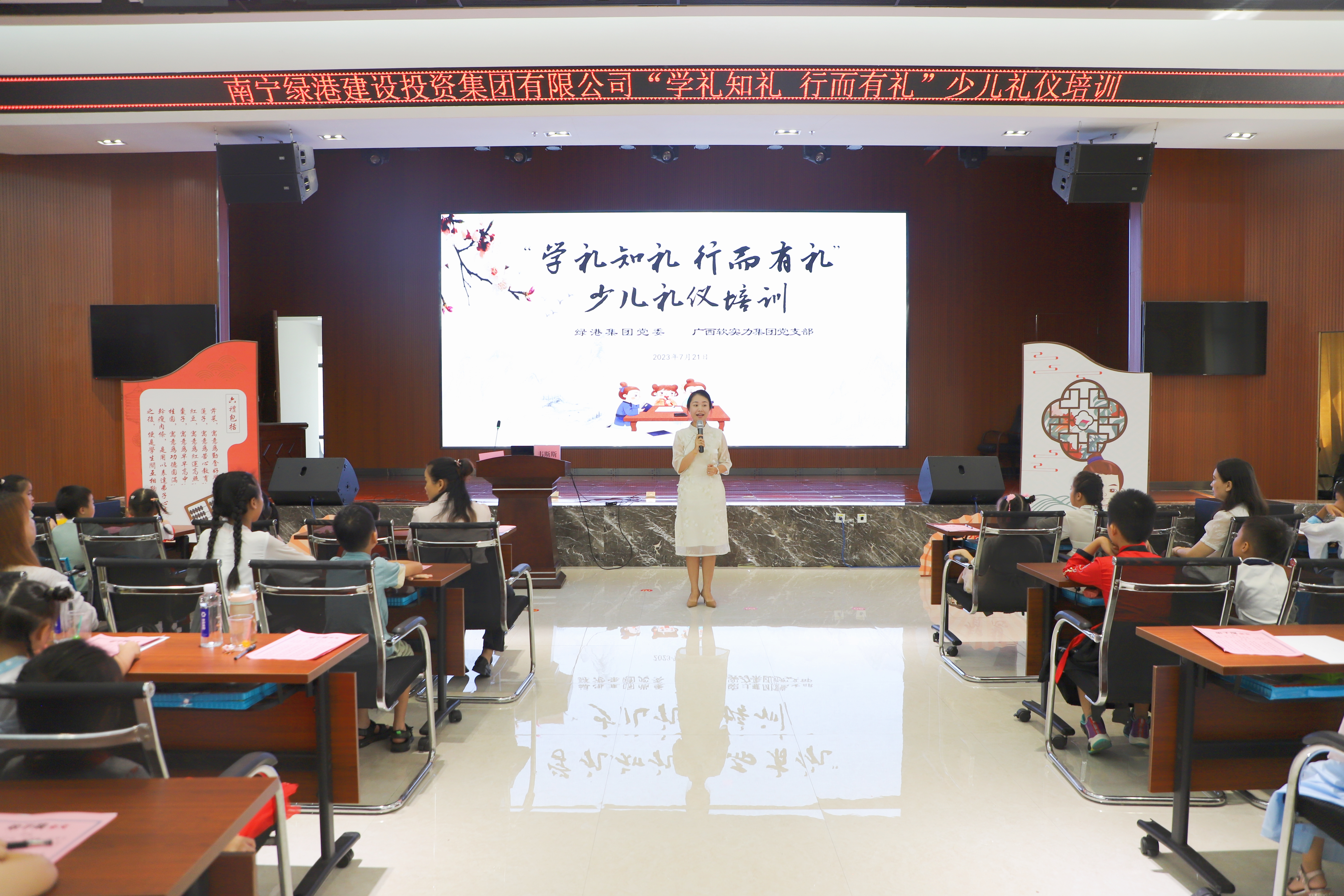 為深化拓展新時代文明實踐活動,更好地傳承和弘揚優(yōu)秀中華文化,加強未成年人思想道德教育,讓孩子們從小講文明、知禮儀,提升素養(yǎng)。7月21日,綠港集團黨委、工會、關工委聯(lián)合組織開展“學禮知禮·行而有禮”少兒禮儀培訓為主題的暑期學堂活動。集團黨委委員、副總經(jīng)理黃麗琴致辭。活動共有60多位職工及少兒參加。